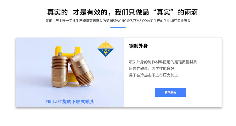 a.喷头按照降雨均匀性原则布置,喷头布置均匀,使降雨区无盲点。根据降雨面积1-30平方米,高度2-6米。雨滴直径在0.3~6.0mm之间,符合模拟雨滴的一般标准。